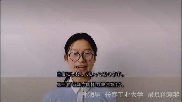 11月14日晚7点,第三届“行知学园杯”日语写作大赛线上颁奖典礼在天津隆重举办。365英国官网荣获“最具创意奖”的孙润昊同学在颁奖典礼上发表了获奖感言。