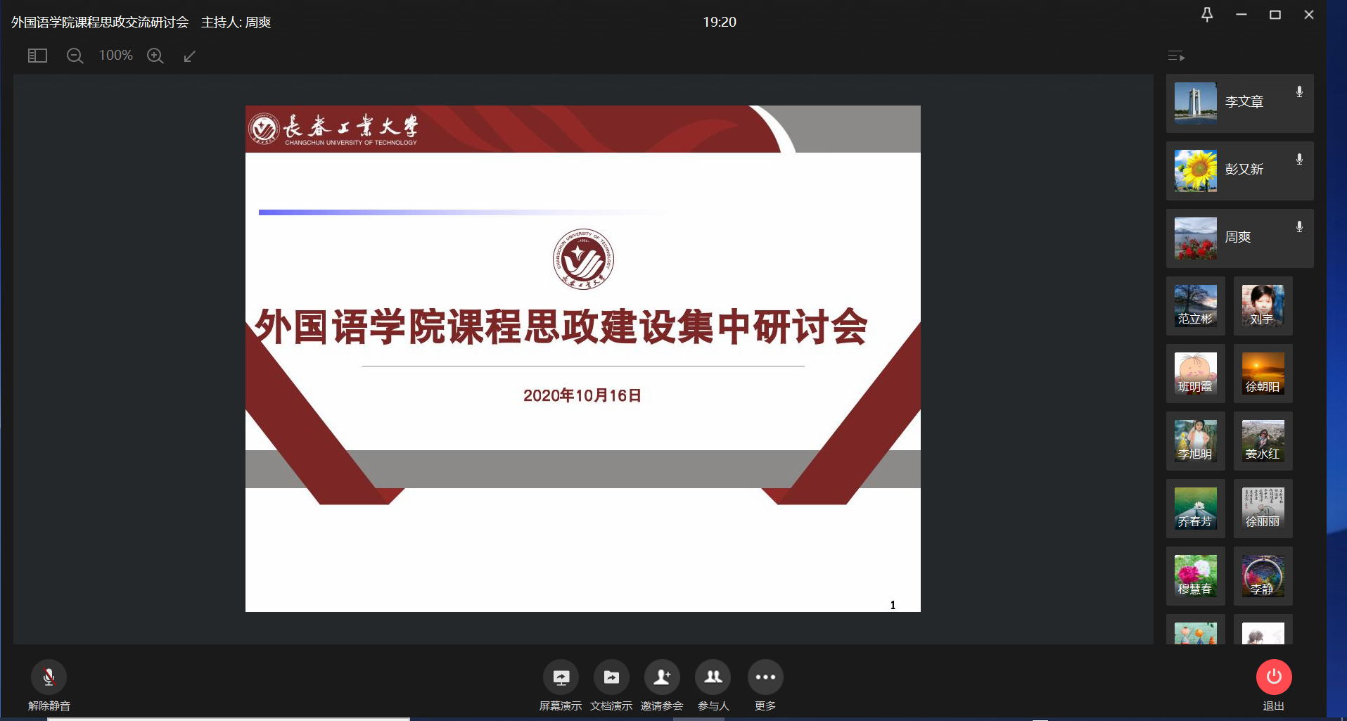 365英国上市官网在此次课程思政研讨会中,通过优秀案例展示活动,肯定了广大教师思政教学前期准备工作,激励和鼓舞全体教师在未来的日常教学中,继续深入挖掘德育元素,继续探讨如何有效开展课堂思政教育,做到语言与育人的深度融合!