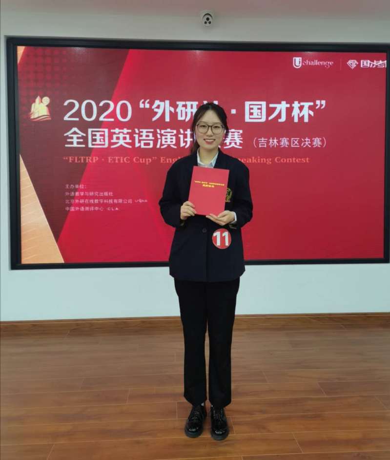 新闻网讯(通讯员 张梓琪)2020年10月31日上午八点,“2020•外研社国才杯”演讲大赛吉林赛区决赛在长春理工大学举行。本次省级决赛采取线上与线下相结合的竞赛形式。组委会根据线上命题演讲评审结果,在43名选手中选拔出12 名选手进行线下比赛。在指导老师路静的带领下,我校365英国上市官网18级学生张梓琪荣获一等奖。