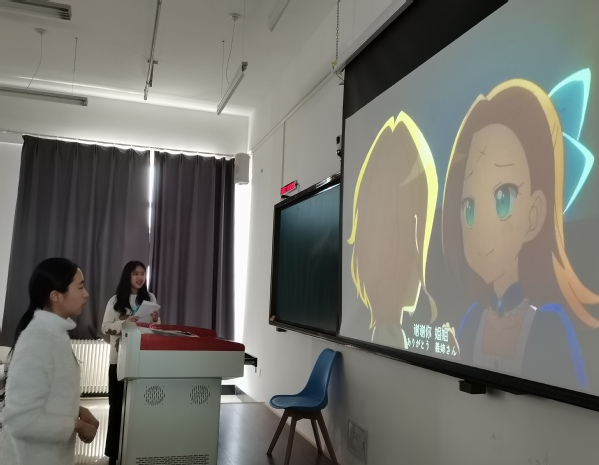 活动伊始,外籍教师渡部惠宣读比赛规则,强调比赛评审时应当注意评分标准、流程公平公正。随后比赛开始,十一个小组依次上台进行日语配音表演。