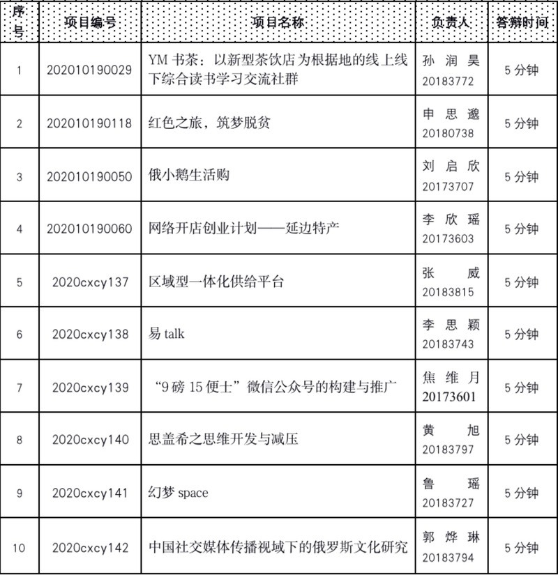 本届“大学生创新创业训练计划”竞赛自2020年4月赛会启动以来,学院成立了评审小组,由副院长周爽,英语系主任刘宇,日语系主任曾妍,俄语系主任张美组成,先后组织召开专项会议4次、专家指导会3场。经过广泛动员和认真组织,全院共申报作品20余件,涵盖了实体经济、社会、旅游及语言习得等多个学科类别,参赛作品数量、学生参与人数再创历史新高。经过院内初审,校内审核,决赛晋级,选手答辩,评审提问等环节,选出的10件作品项目研究目的、意义描述清晰、准确,研究内容及目标有计划、有层次、有重点,项目具有可行性,逻辑清晰,成果明确,具有推广应用价值对这10件作品审核后并顺利结题。