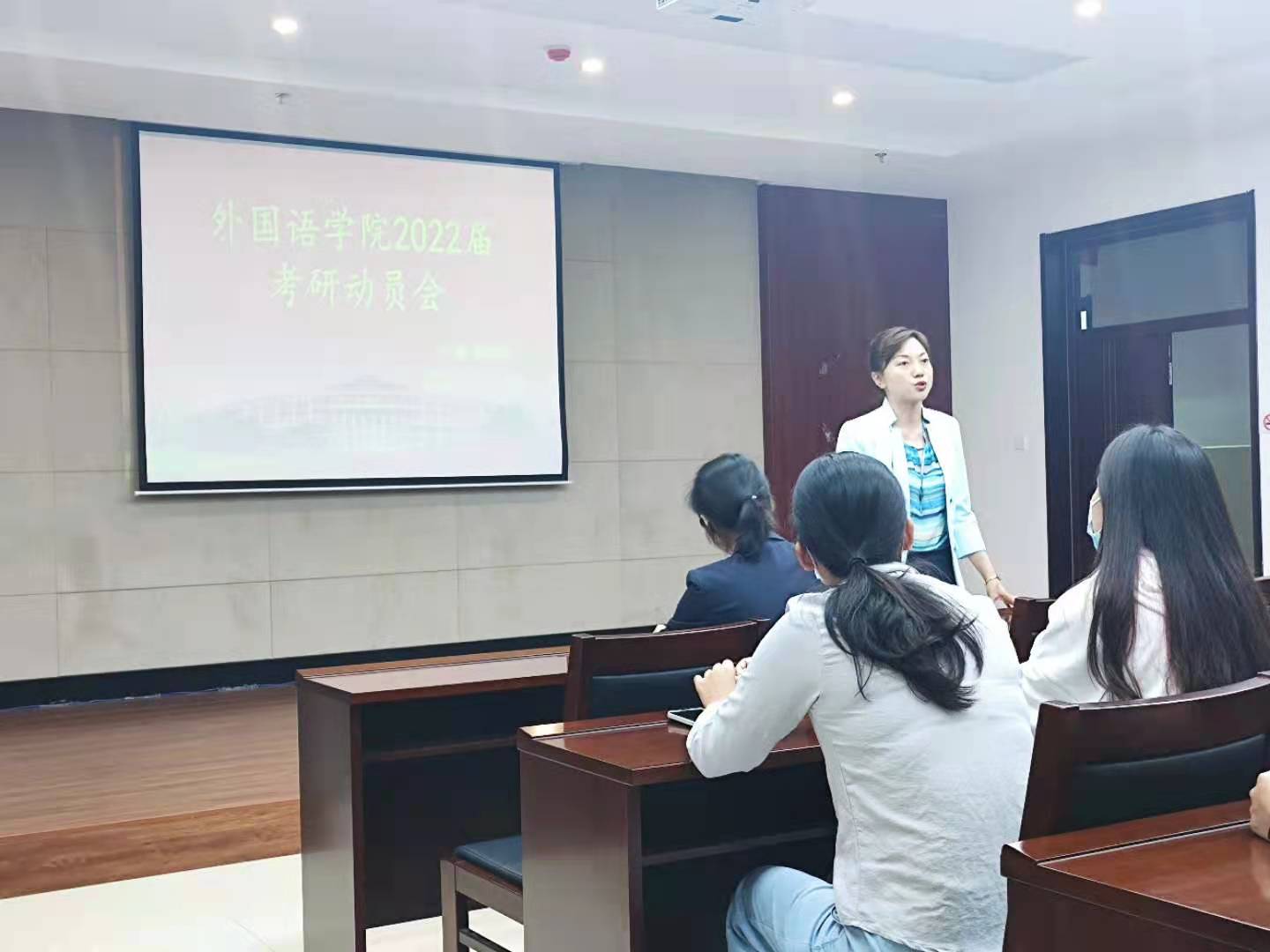 新闻网讯(通讯员 江炜彬)为帮助2022届毕业生解答考研疑惑,明晰考研方向,365英国上市官网于9月16日中午12:40在北湖校区东区主楼435会议室召开“2022届毕业生考研动员会”。副院长王轶、副院长曾妍、俄语系主任张美、英语系支部书记兼研究生辅导员李笑及全体毕业生参加会议。