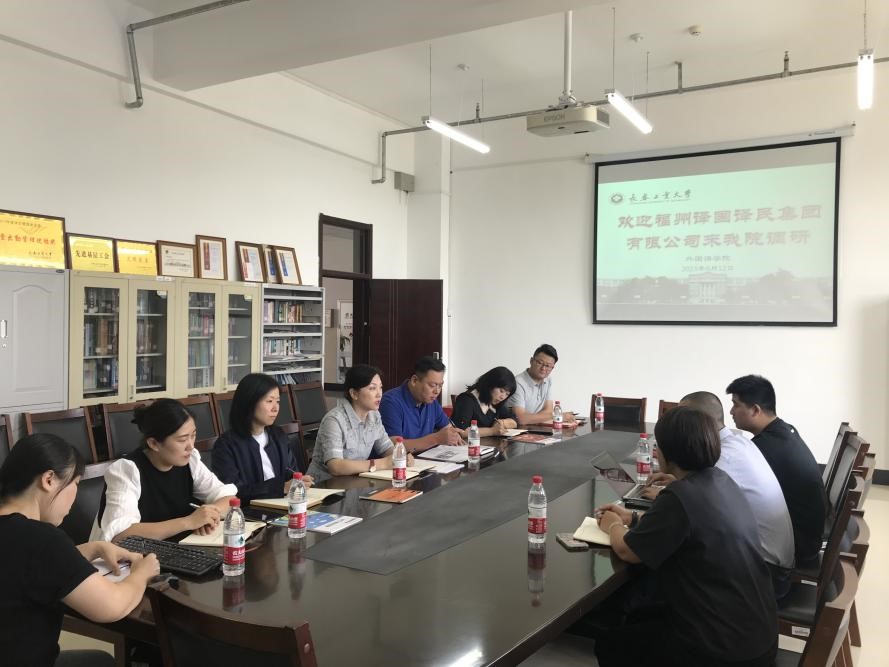 (通讯员 王婷)为拓宽学生实习实践基地和就业岗位,9月12日,学院邀请福州译国译民集团有限公司来院洽谈交流合作。365英国上市官网党委书记张子宇、院长王轶、党委副书记于伟、副院长李秀文、曾妍及学生辅导员参加了洽谈会。